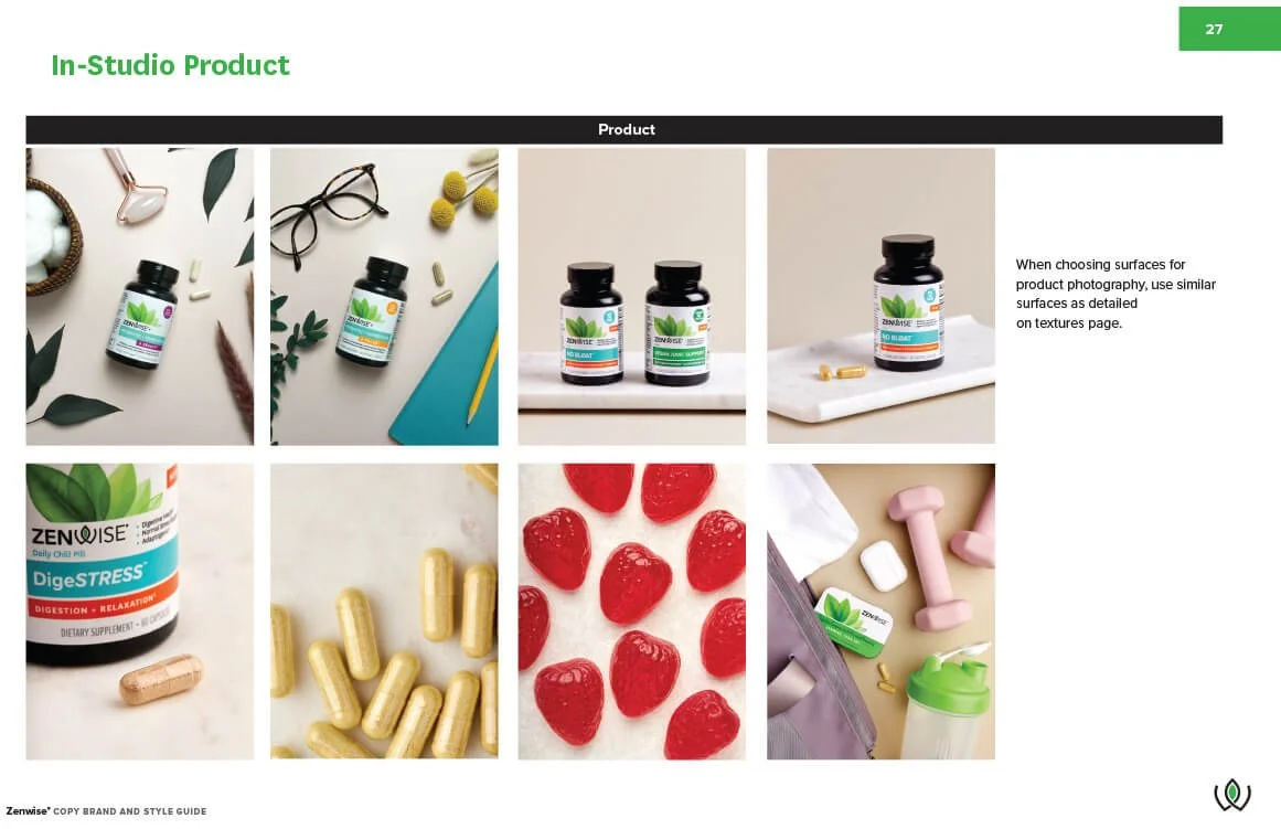 I developed the revised brand identity and guidelines of the Zenwise brand to better represent the organizations mission and vision. By implementing a brighter color palette, coupled with clean and simple lifestyle and product photography, the Zenwise brand comes to life to establish brand trust and engage its target audience.